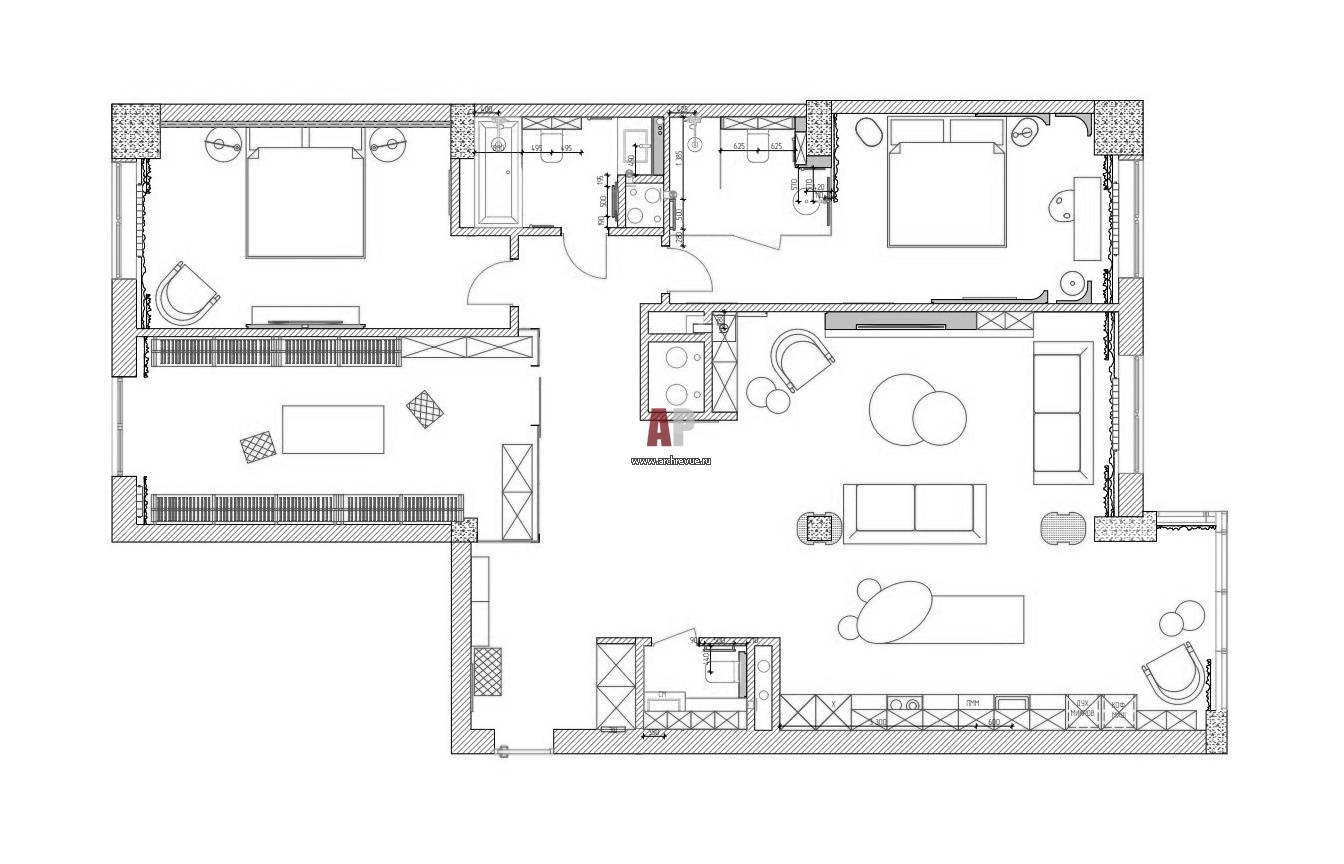 Перепланировка чытерхкомнатной квартиры в ЖК премиум-класса. Общая площадь - 150 кв. м.