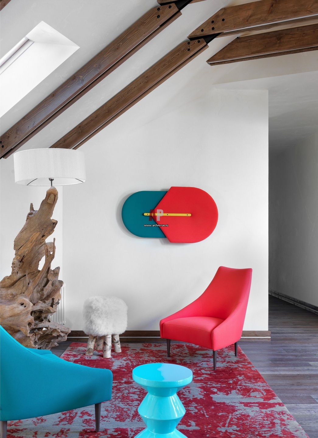Авангардное шале с этническими мотивами и разноцветной мебелью. Лаундж второго этажа.