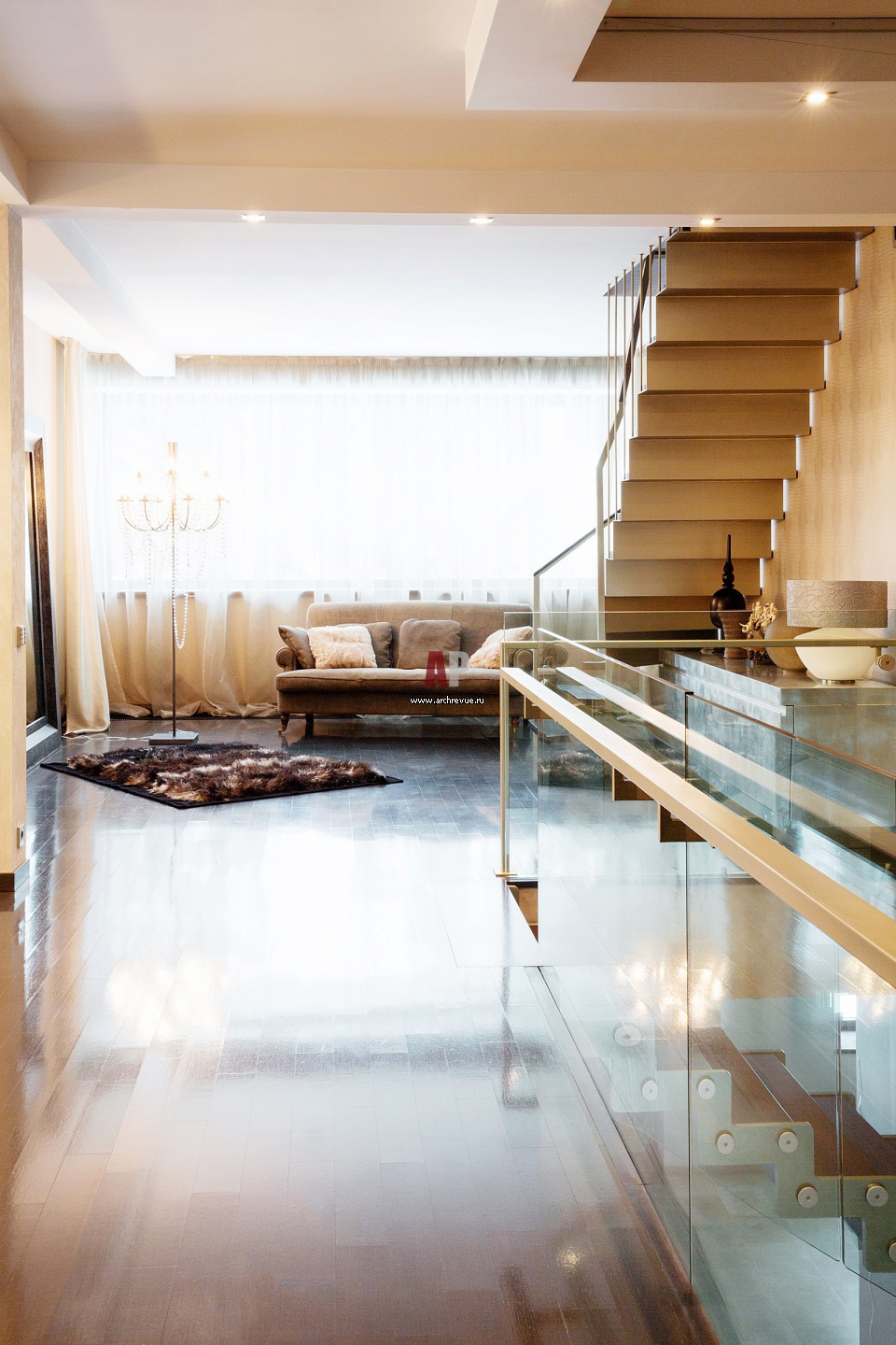 В объем большого холла второго уровня включена зона отдыха возле панорамного окна.