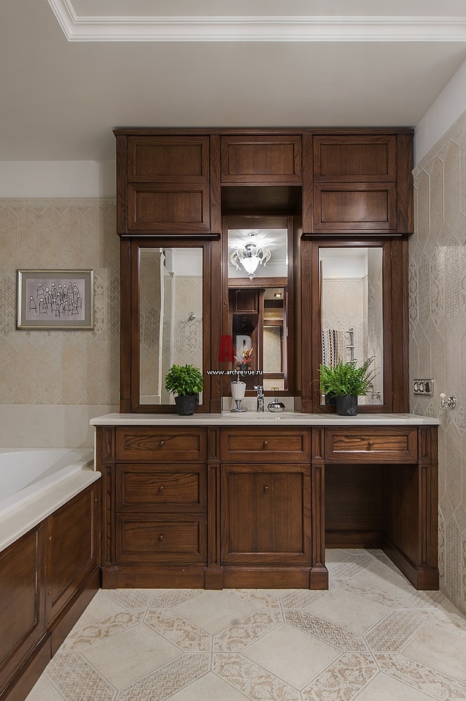 Ванная комната при хозяйской спальне. Стены и пол – плитка, Ceramica Vallelunga. Умывальник, Bianchini&Capponi. Аксессуары для санузлов, Bagno & Associati.