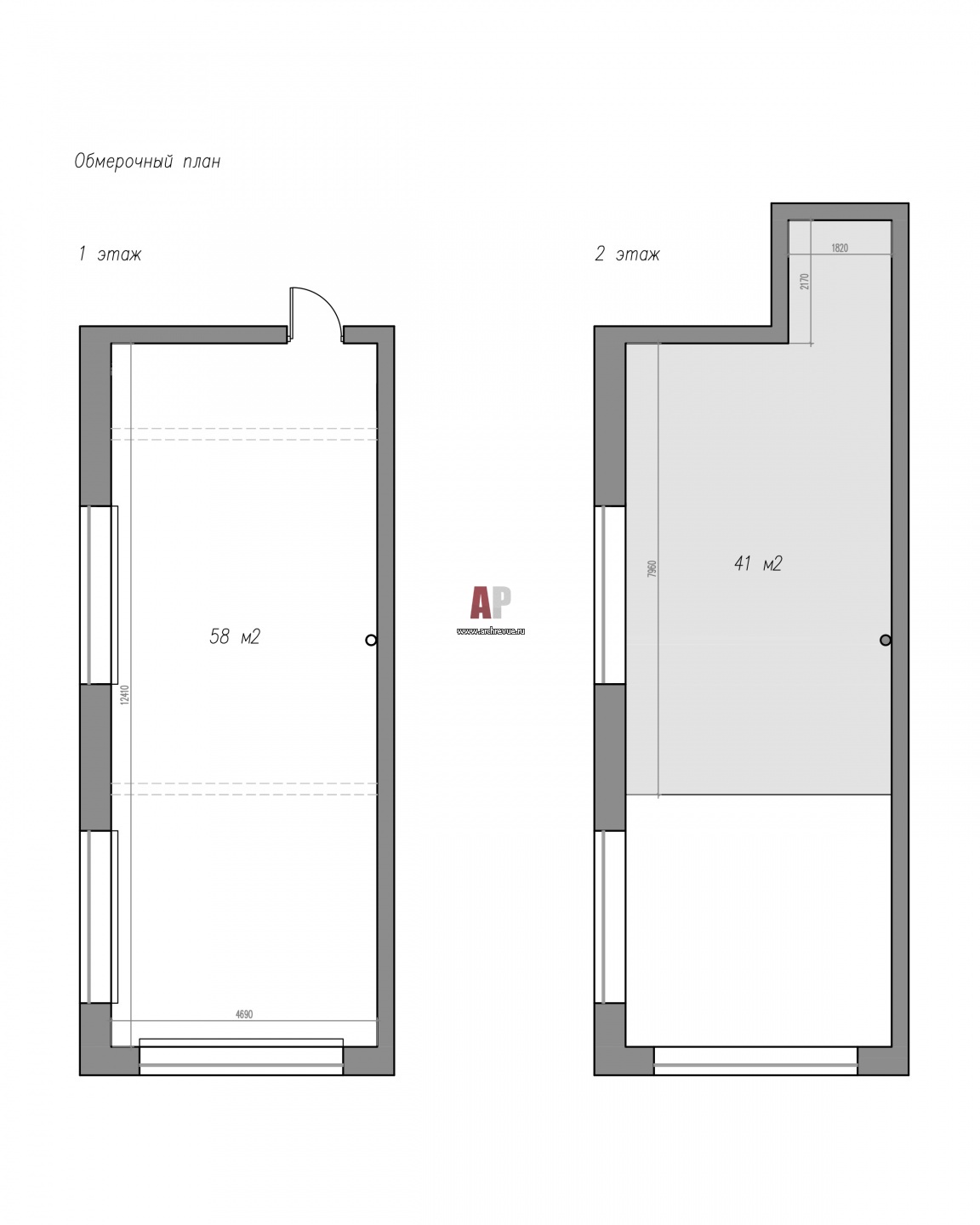 Обмерный план двухэтажного лофта в ЖК Loft Factory.
