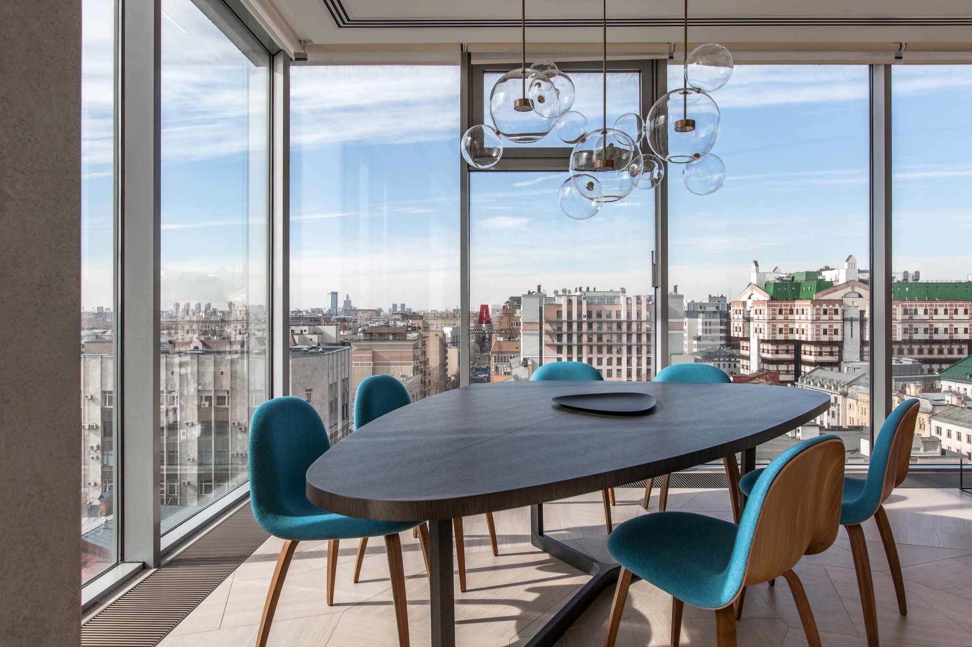Зона для завтраков у панорамного окна. Обеденный стол, B&B Italia. Стулья, Gubi.