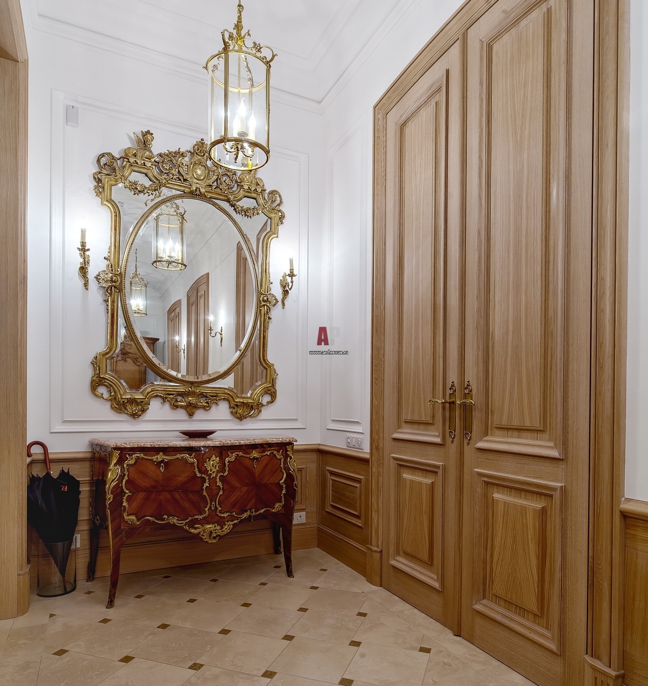 Интерьер прихожей в стиле французской классики. Зеркало, антиквариат, Франция.
