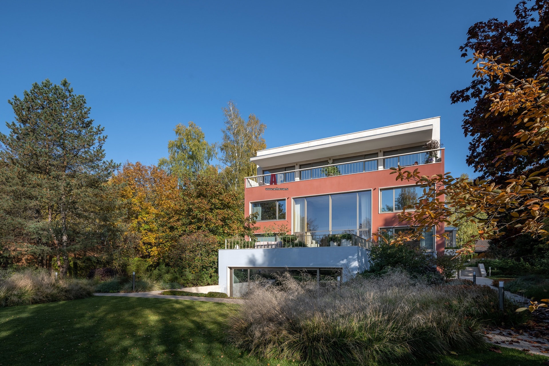 Дом расположен на живописном участке. Основные помещения выходят на южную сторону. Перед домом разбита лужайка, которая открывает фасад солнцу.