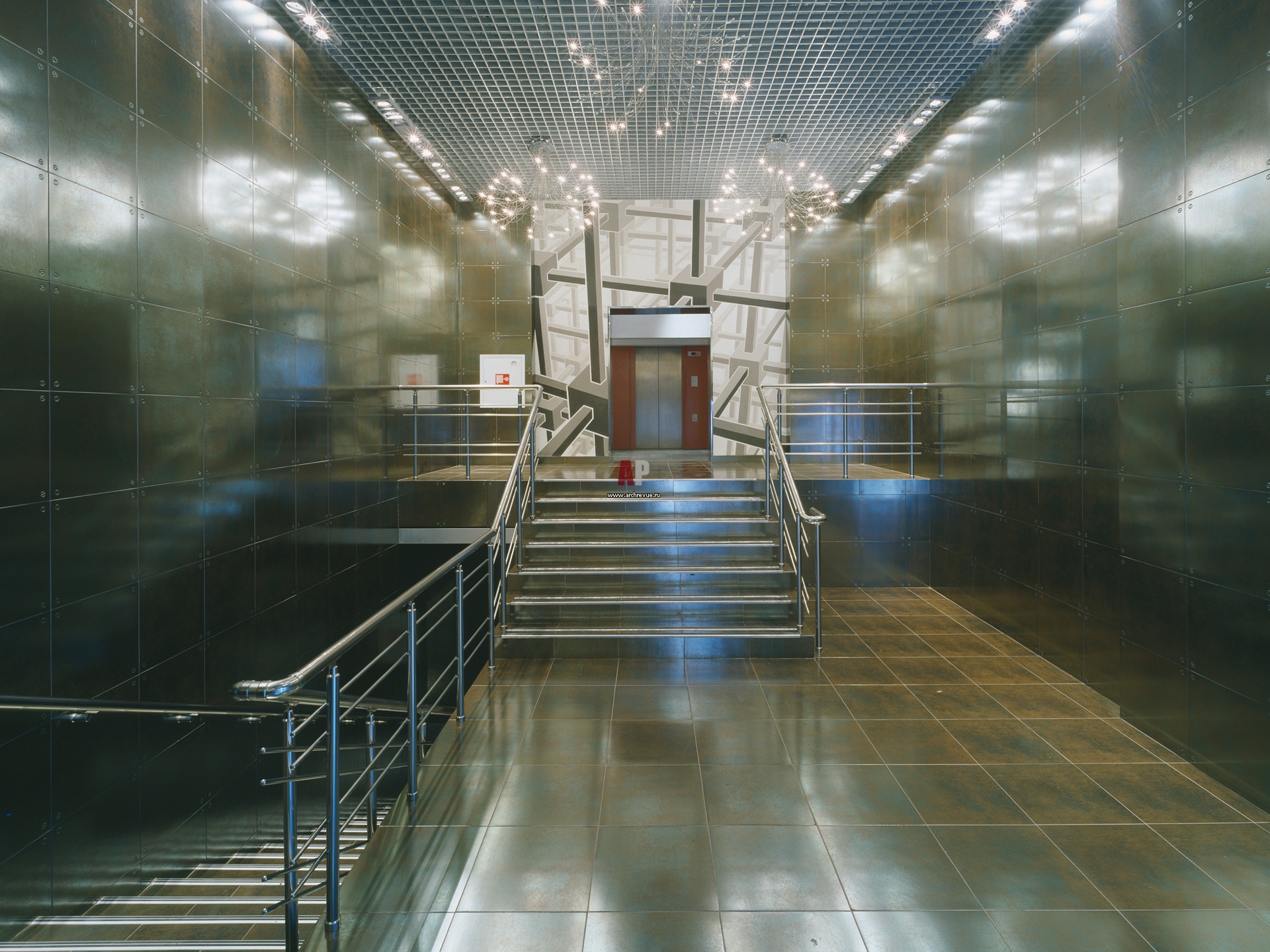 Важную роль в оформлении офисного центра играет искусство. Один из лифтовых холлов оформлен росписью на сюжет головоломки художника Мориса Эшера.