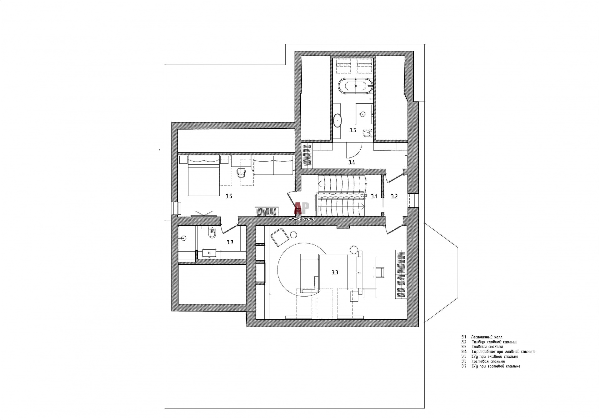 Планировка мансарды загородного дома.