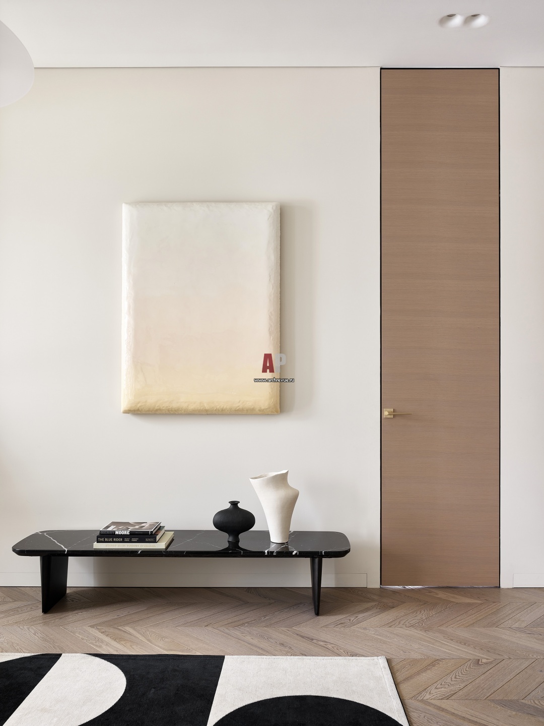 Гостиная. Двери с высокими полотнами визуально увеличивают высоту помещений. На стене – панно из смолы Яна Тихоненко.