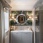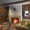 Камерный кабинет с зоной камина в английском стиле. Камин с открытой кирпичной топкой отделан мраморным порталом светлых тонов.