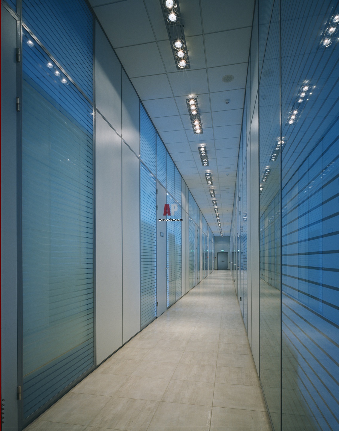 Рабочее пространство выполнено в стекле. Потолок Armstrong, поставщик «Инвест групп».