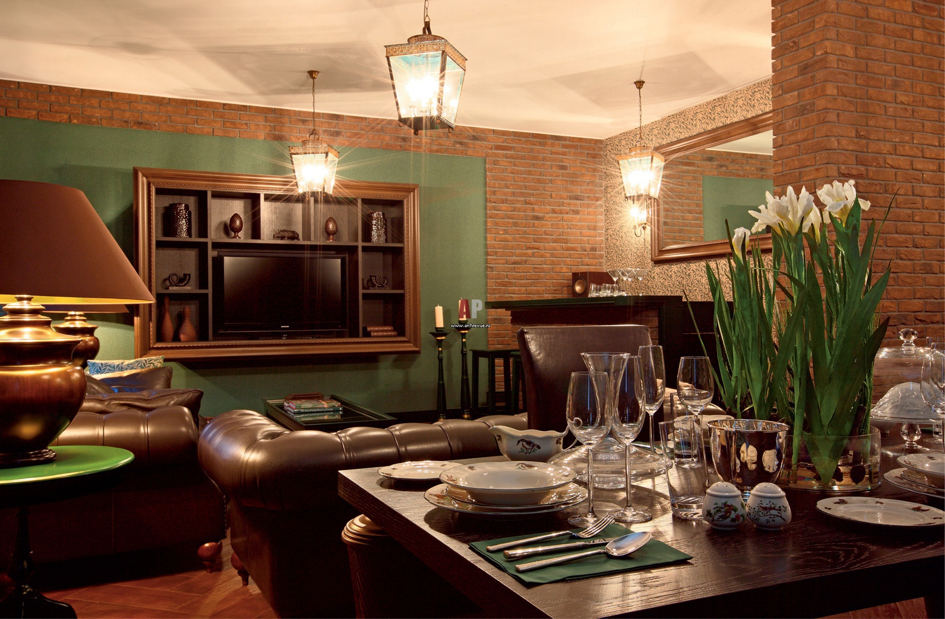 Стены в квартире облицованы голландским обожженным кирпичом Klinkerwerke Muhr, поставщик «Энки». Настенное зеркало, шкаф, обеденная группа – все EGO, поставщик Podium.