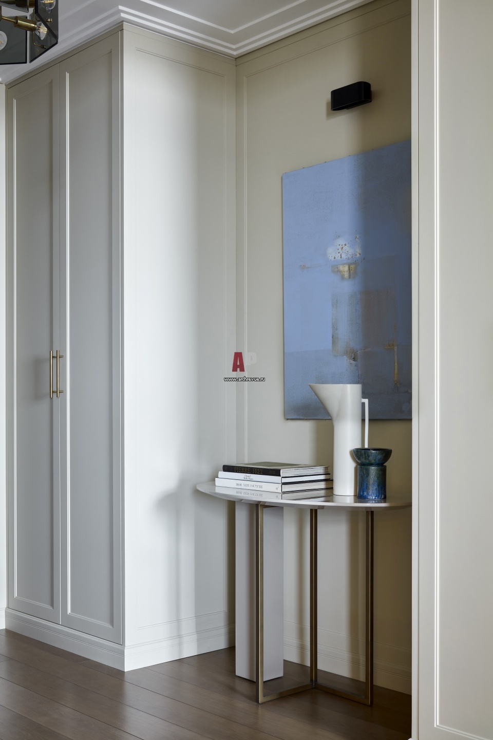 Интерьер прихожей квартиры в американском стиле с уклоном в ар-деко. В нише – консоль, Meridiani.