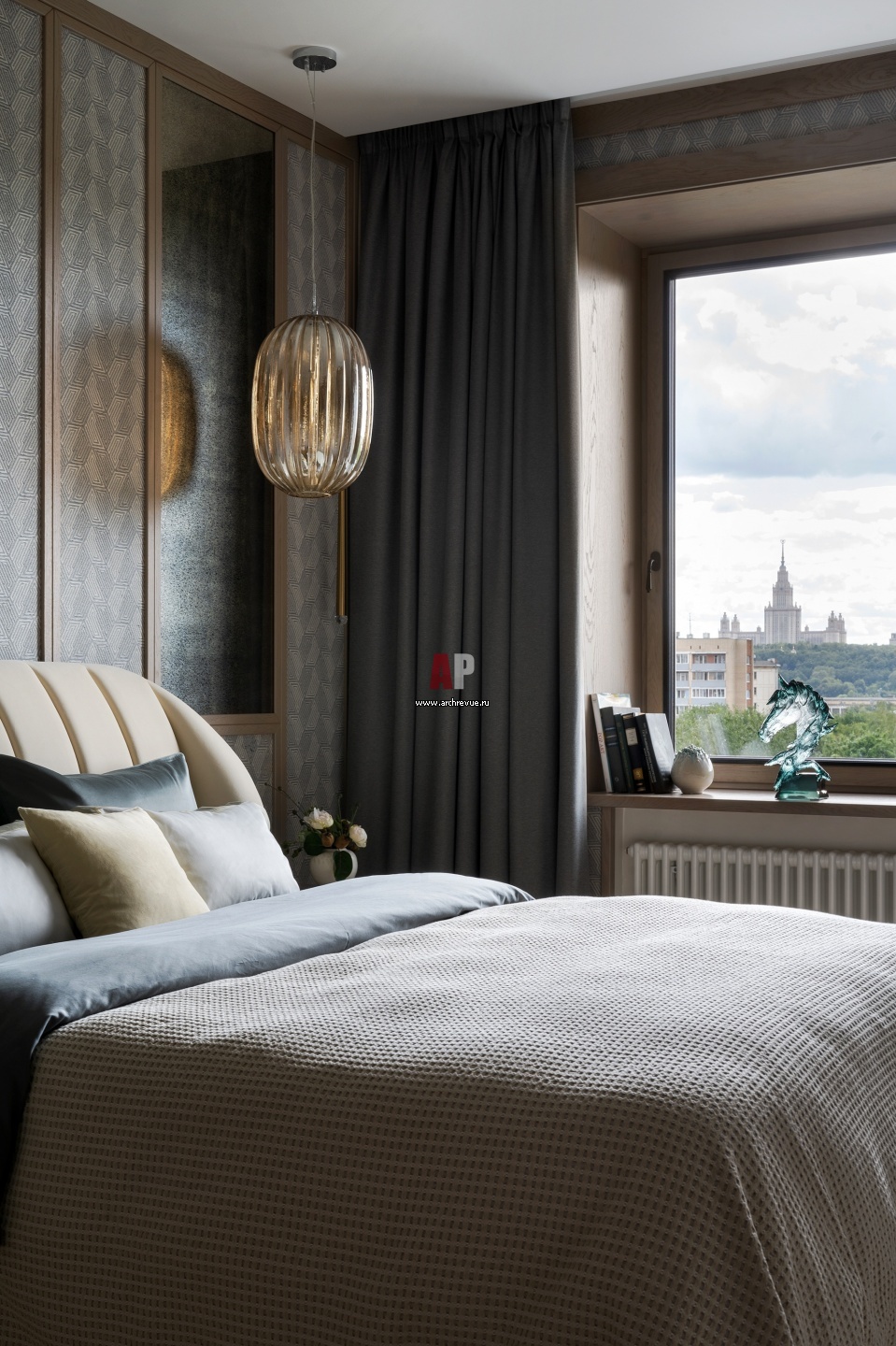 Современная квартира с ностальгией по наследию советской эпохи. Стены спальни обиты тканью.