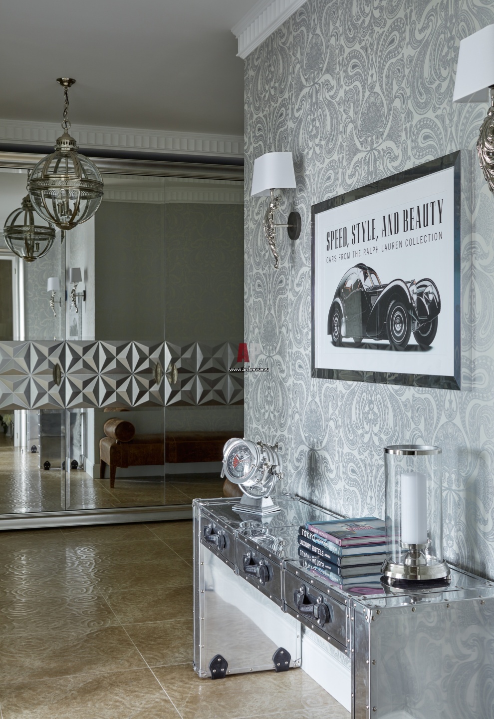 Интерьер прихожей квартиры с элементами американской классики и стиля гламур.