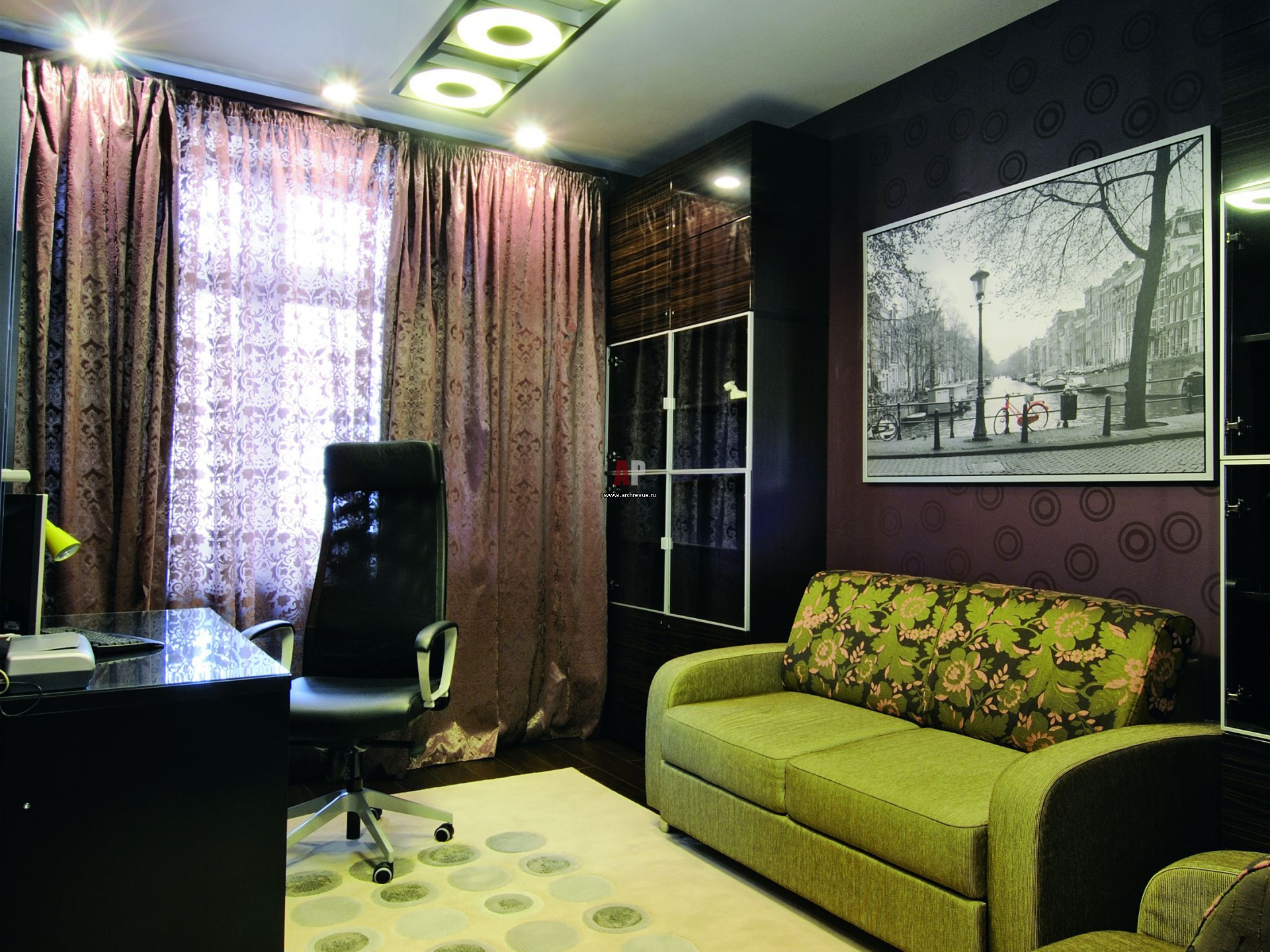 Кабинет – камерное помещение, настраивающее на работу. Мебель Bamax, текстильный дизайн «Атлас А».