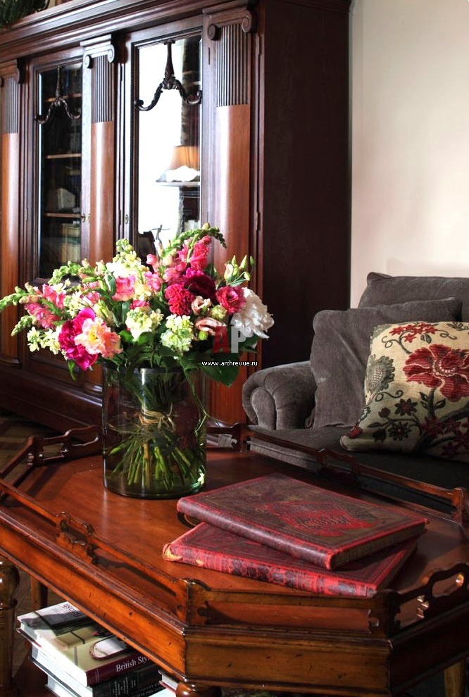 Фото интерьера квартиры в старомосковском стиле с антиквариатом.