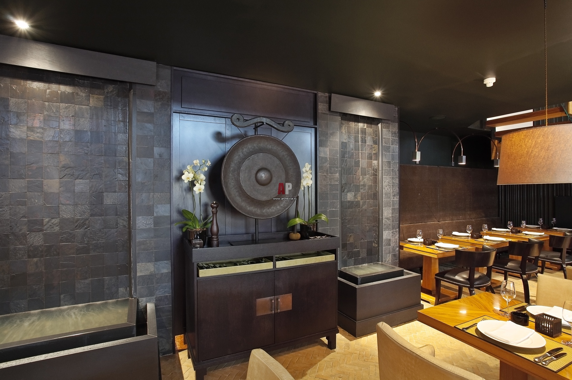 Фото интерьера азиатского зала ресторана в стиле фьюжн