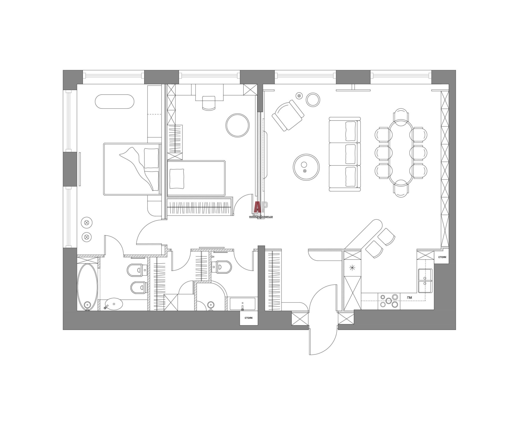 План трехкомнатной квартиры в ЖК «ЗилАрт». Общая площадь – 105 кв. м.
