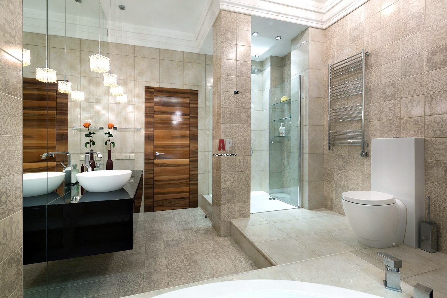 Интерьер ванной комнаты в стиле роскошного СПА-салона. Умывальник, Rifra.
