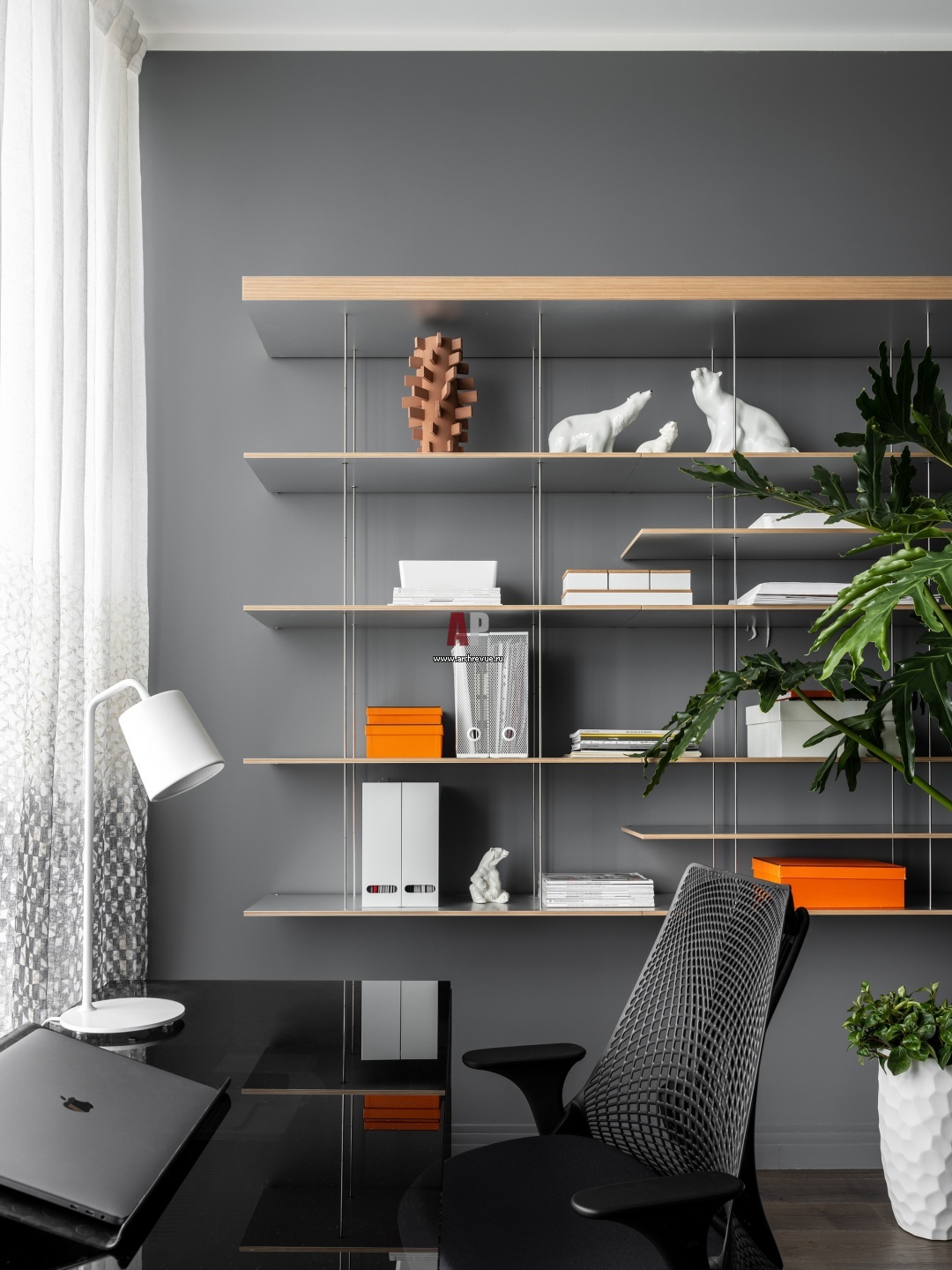 Пентхаус, созданный дизайнером Екатериной Бегичевой для себя и своей семьи. Фрагмент рабочего кабинета на втором этаже.