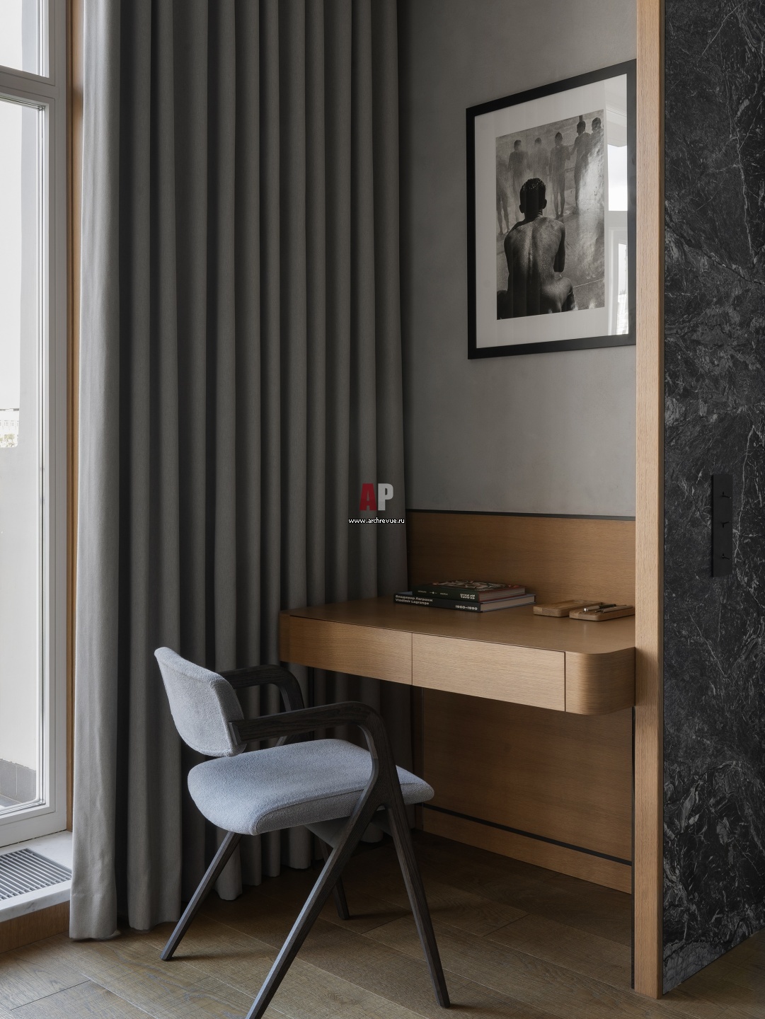 Зона кабинета. Корпусная мебель выполнена на заказ по эскизам автора проекта. Стул, Gallotti & Radice