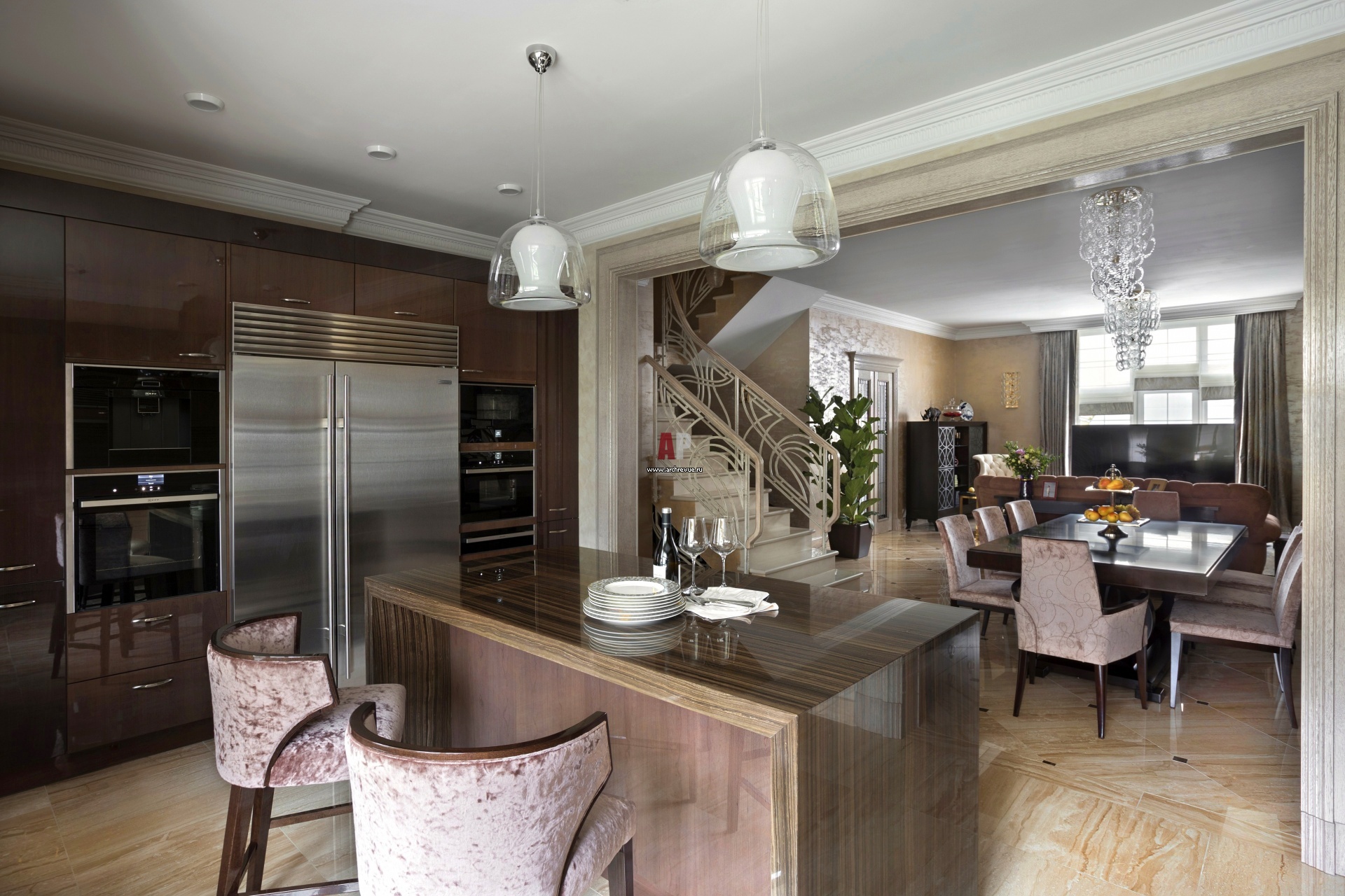 Фото интерьера таунхауса в стиле ар-деко и сдержанной цветовой палитрой.