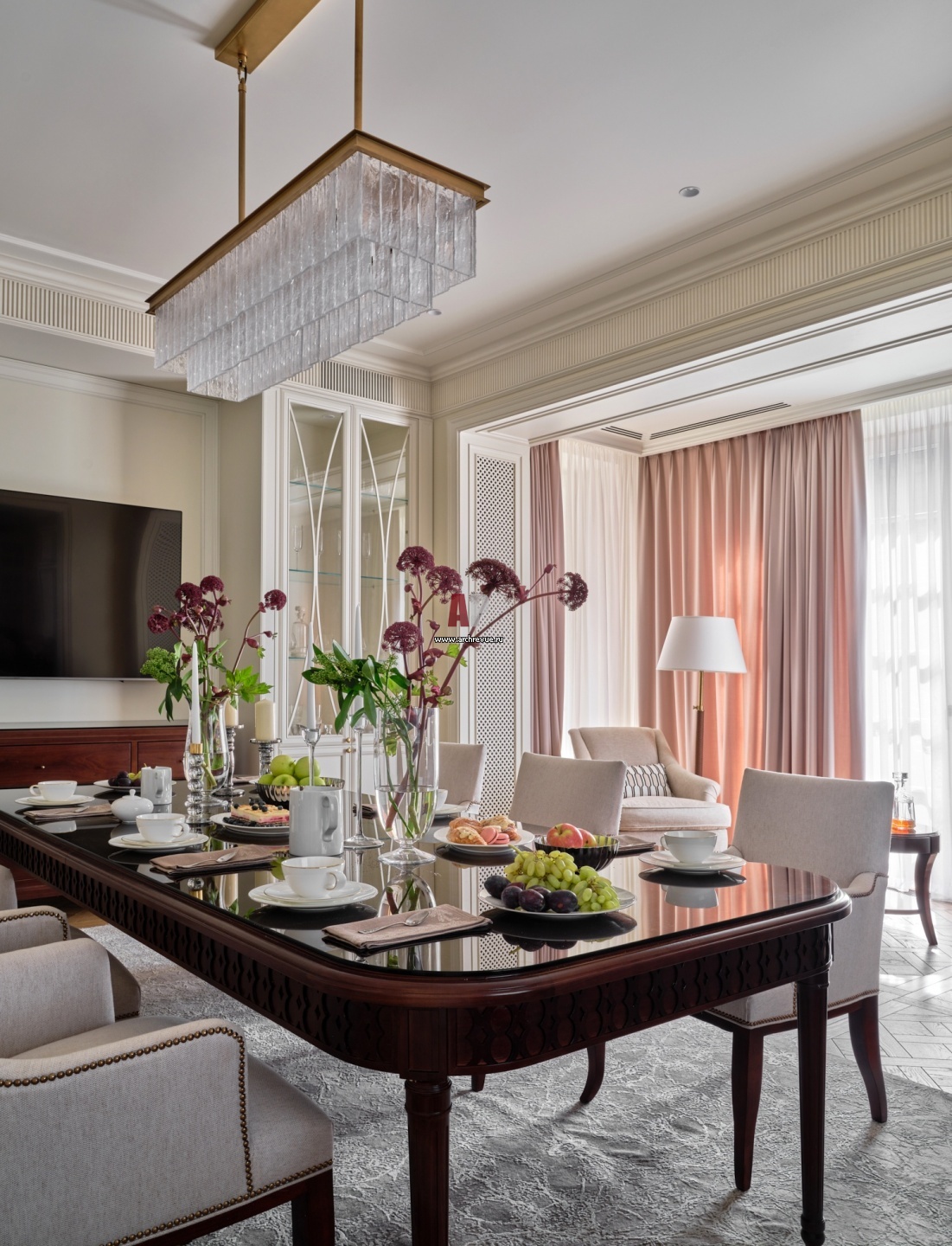 Дом в стиле американской классики для семьи с тремя детьми. Интерьер парадной столовой.