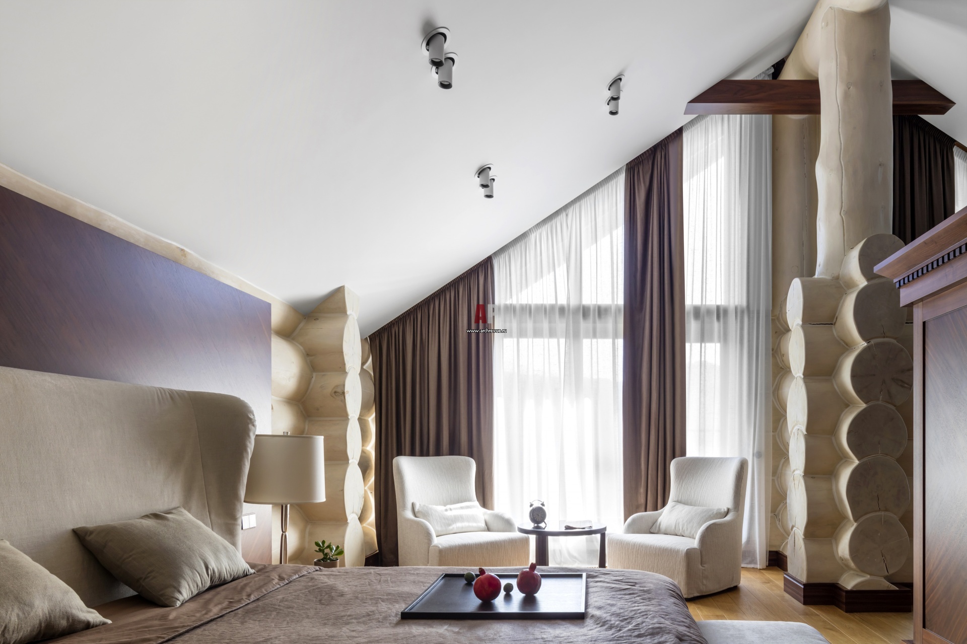 Фото интерьера спальни деревянного дома в американском стиле