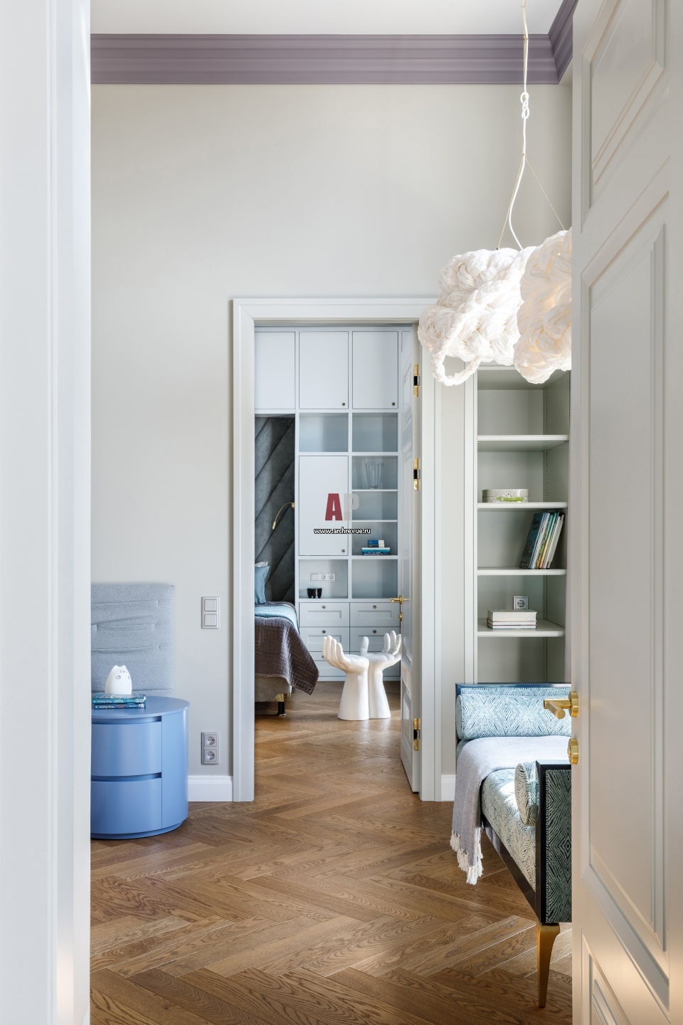 Три спальни (родительская и две детские), а также игровая детская комната встроены в анфиладу с проходными помещениями.