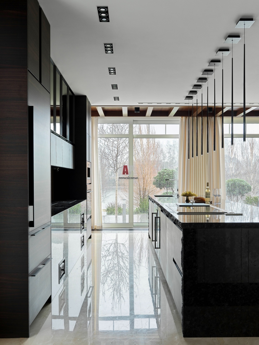 Эпатажный гостевой дом для ивентов и приемов. Раздвижные окна в пол с трех сторон помещения дают возможность превратить дом в уличную беседку с выходом на открытую террасу у воды.