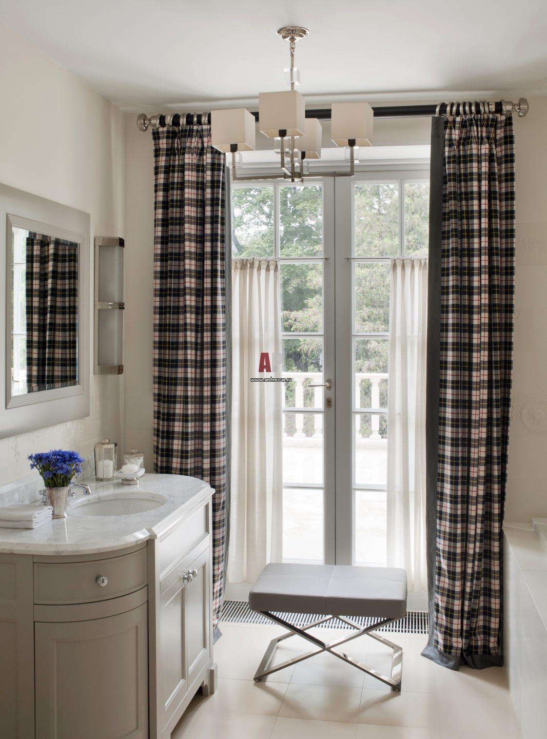Ванная при детской. Бра и карниз для штор, Ralph Lauren. Комод под раковину и зеркало сделаны на заказ в Москве.