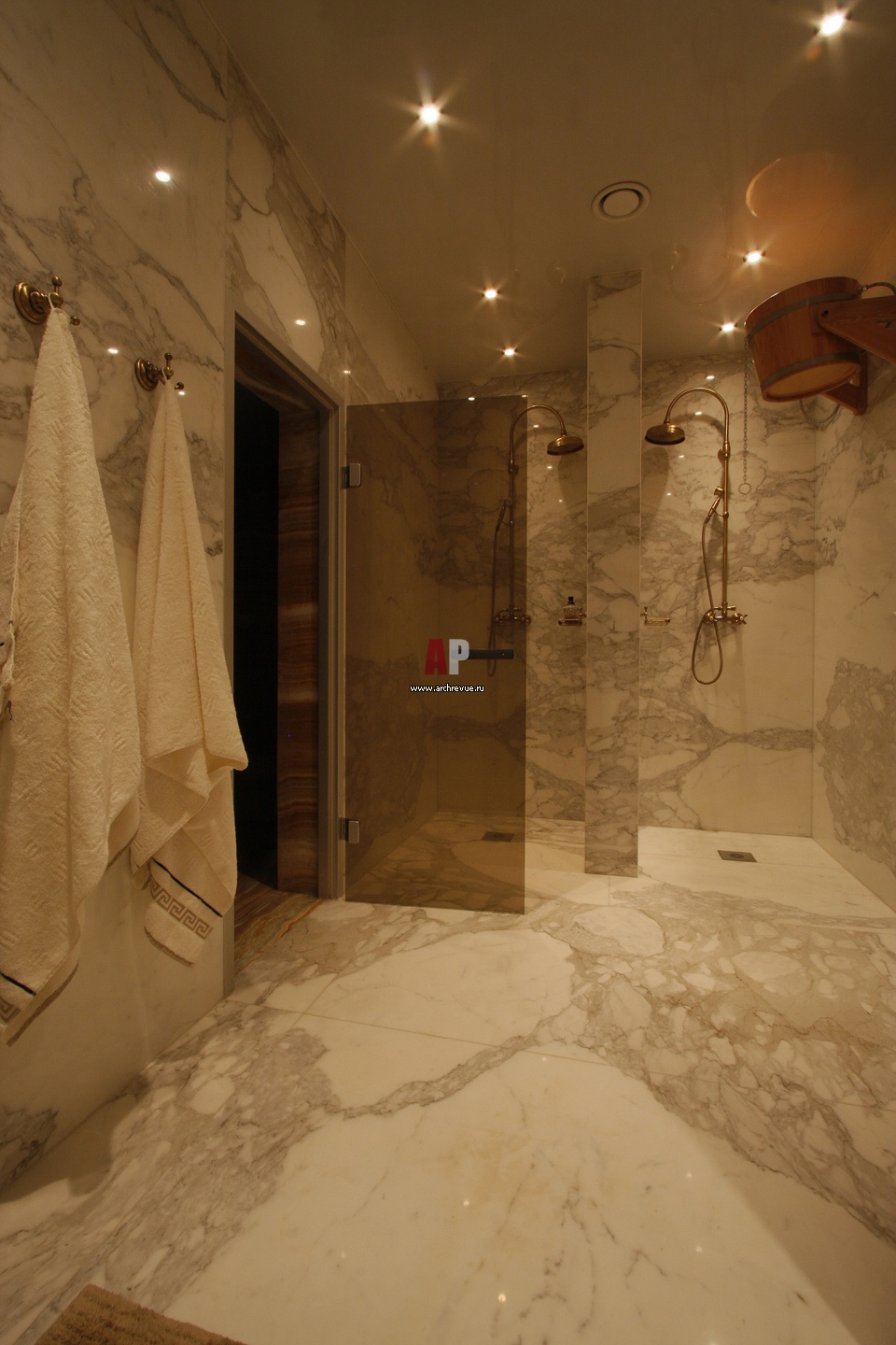 SPA-комплекс состоит из турецкой бани, парилки и душевой, расположенной между ними.