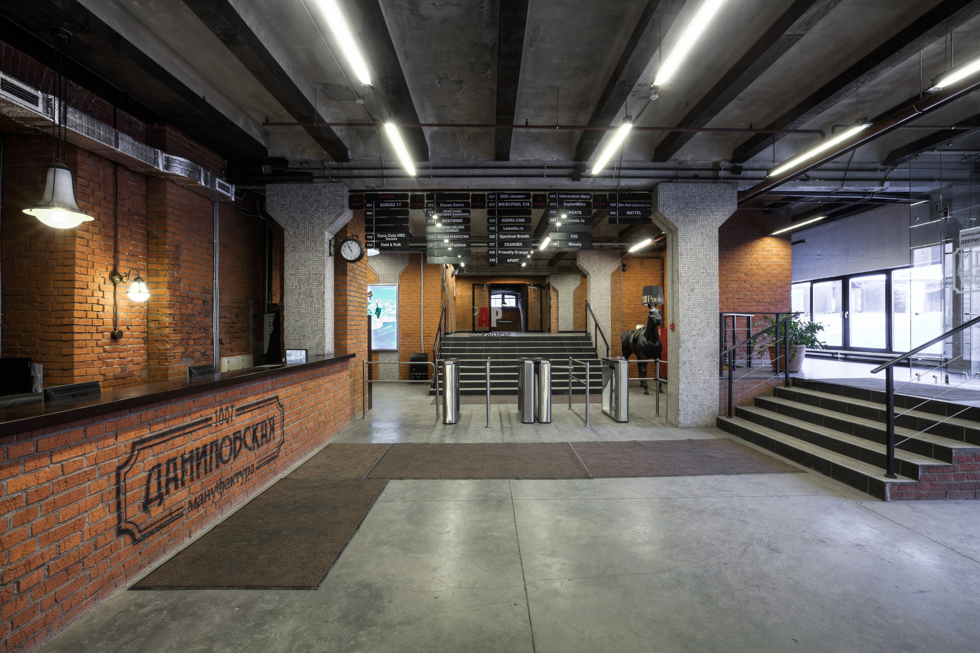 Фото интерьера входной группы БЦ «Даниловская мануфактура» в стиле loft.