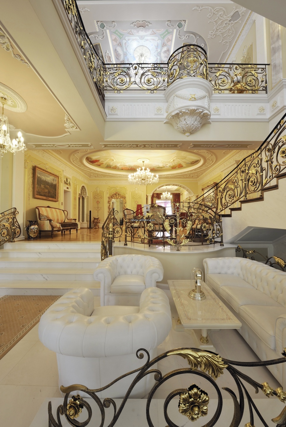 Фото интерьера лестничного холла резиденции в дворцовом стиле