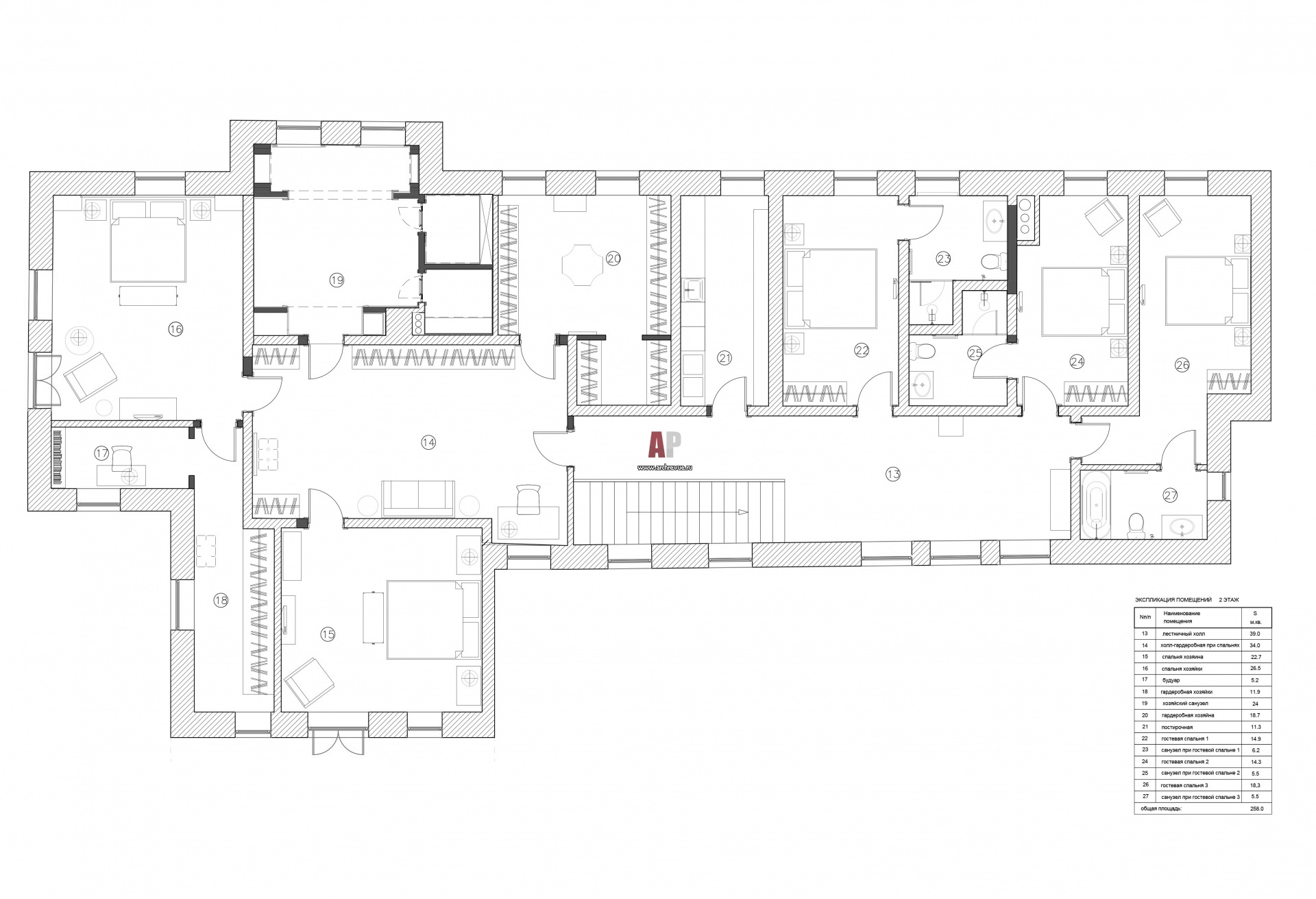Планировка 2 этажа 2-х этажного семейного дома в Аносово.