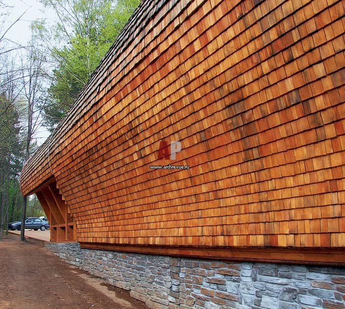 Кровля выполнена из гонта – деревянного кровельного материала в виде дощечек, имеющих клинообразное сечение. В толстой кромке дощечки делается паз, в который входит острый край соседней гонтины при покрытии крыши. Всего было применено более 10000 гонтин.