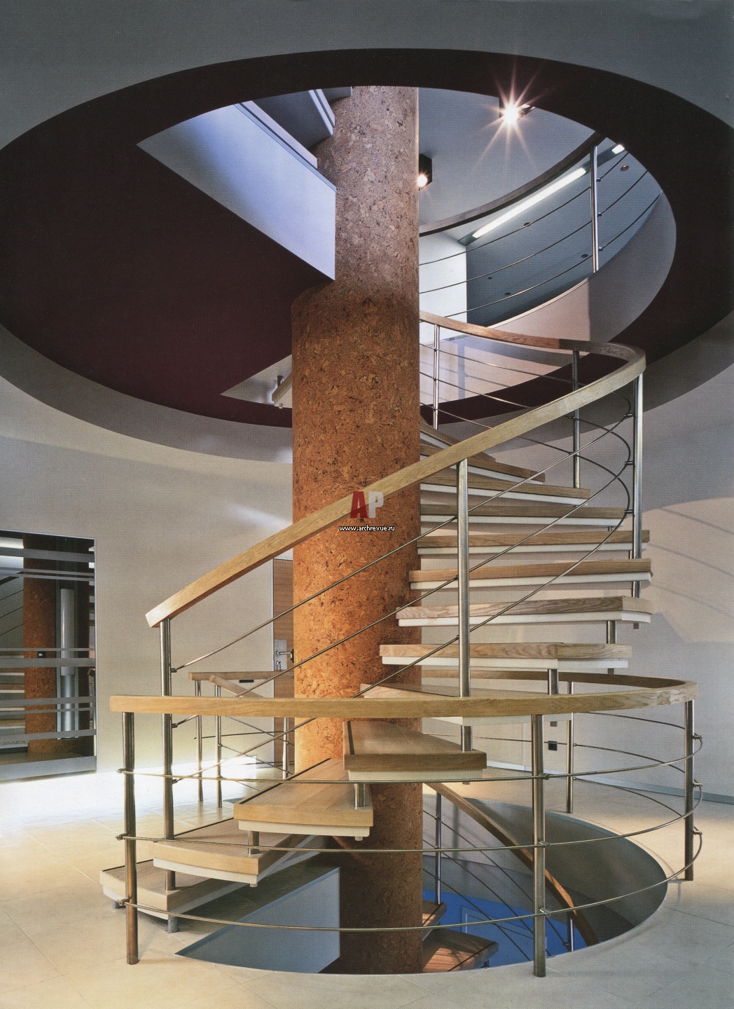 Центральную часть дома занимают лестничные холлы, соединенные винтовой лестницей.