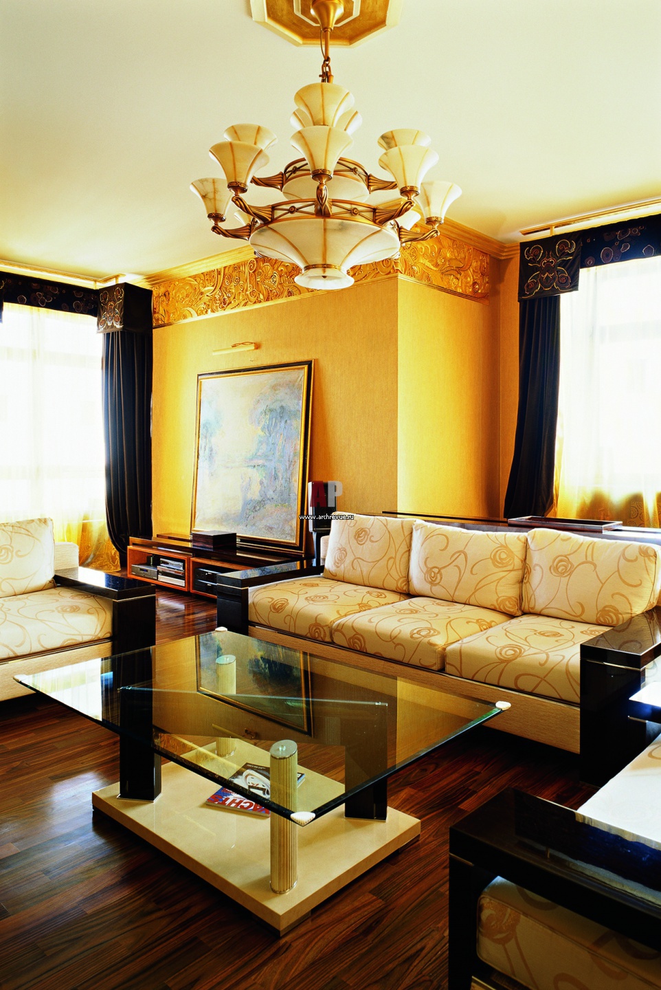 Фото интерьера гостиной квартиры в стиле ар-деко