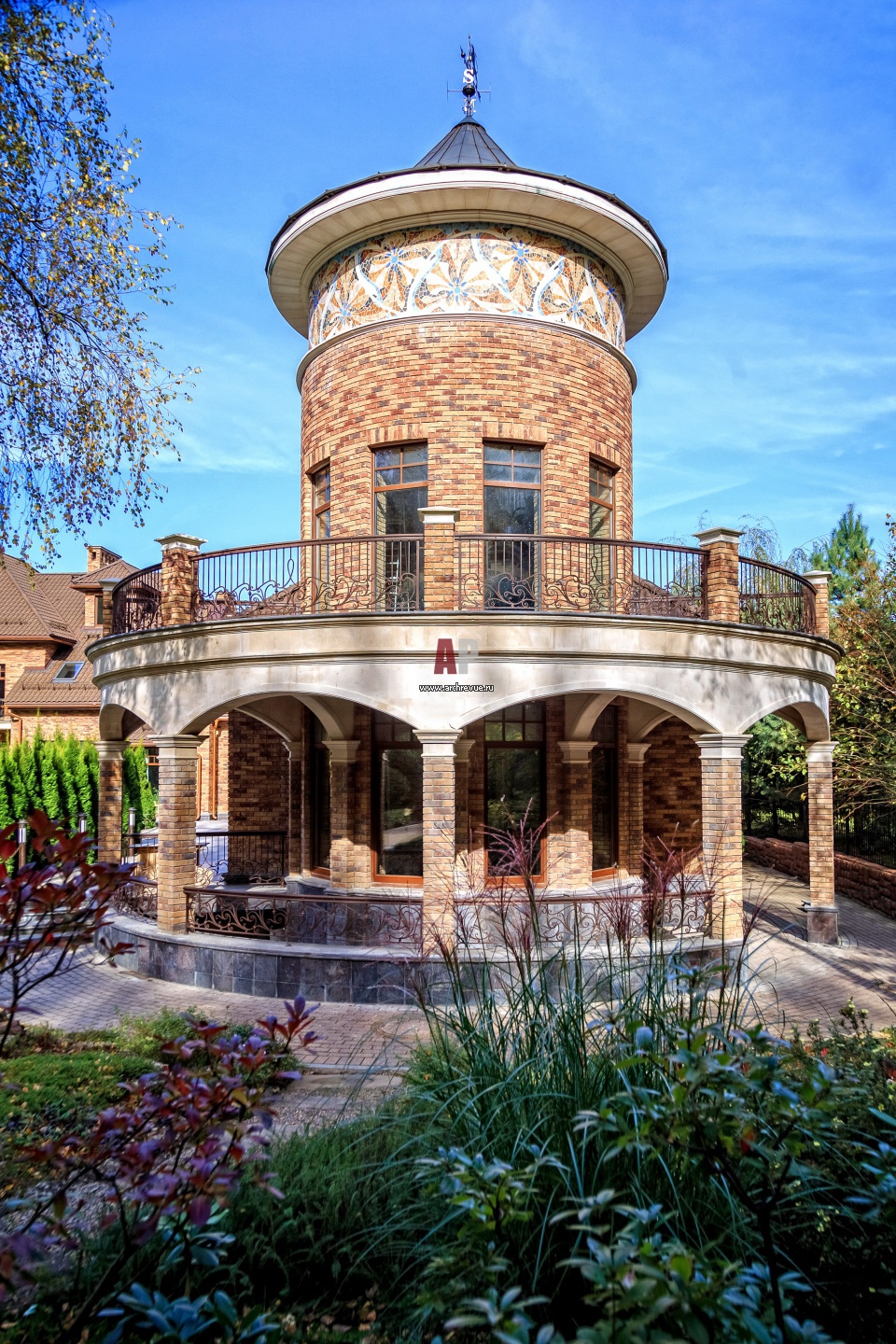 Дом состоит из нескольких объемов, один из них – круглая башня для отдыха, построенная в традиционном фламандском стиле.