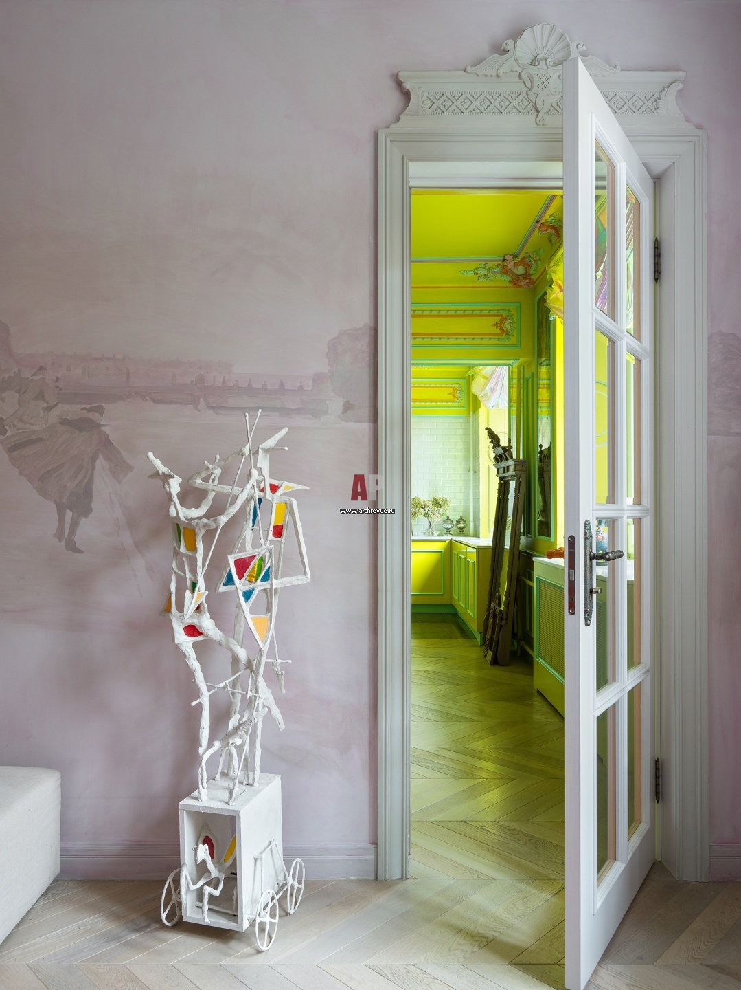Эпатажная квартира московских дизайнеров. Малая гостиная. Керамические скульптуры «Астронавты» Татьяны Антошиной.