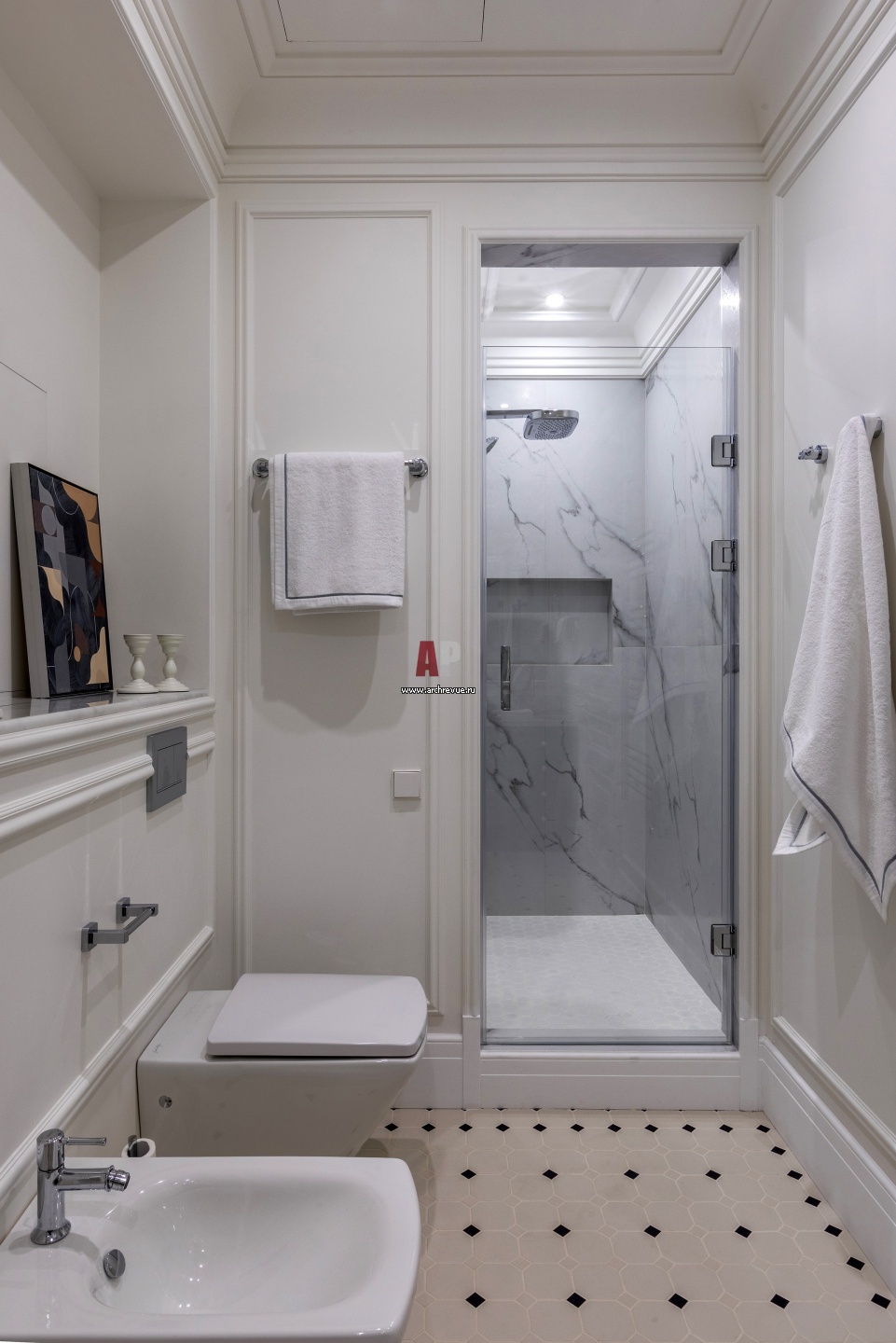 Зона душевой в хозяйском санузле. Унитаз, биде, Jacob Delafon.