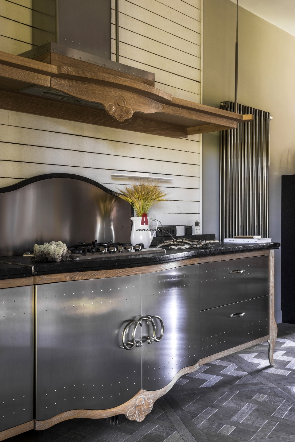 Дом с элементами стиля лофт, гранж и скандинавский шик. Интерьер кухни. Вертикальные радиаторы Zehnder.