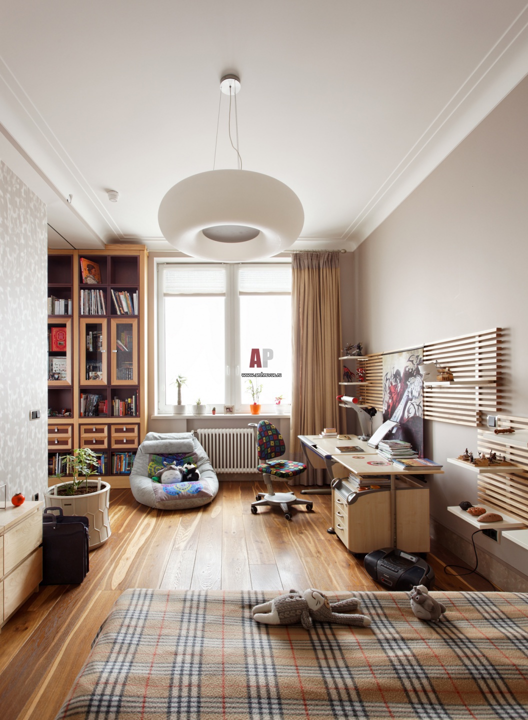Фото интерьера детской комнаты видовой квартиры в современном стиле.