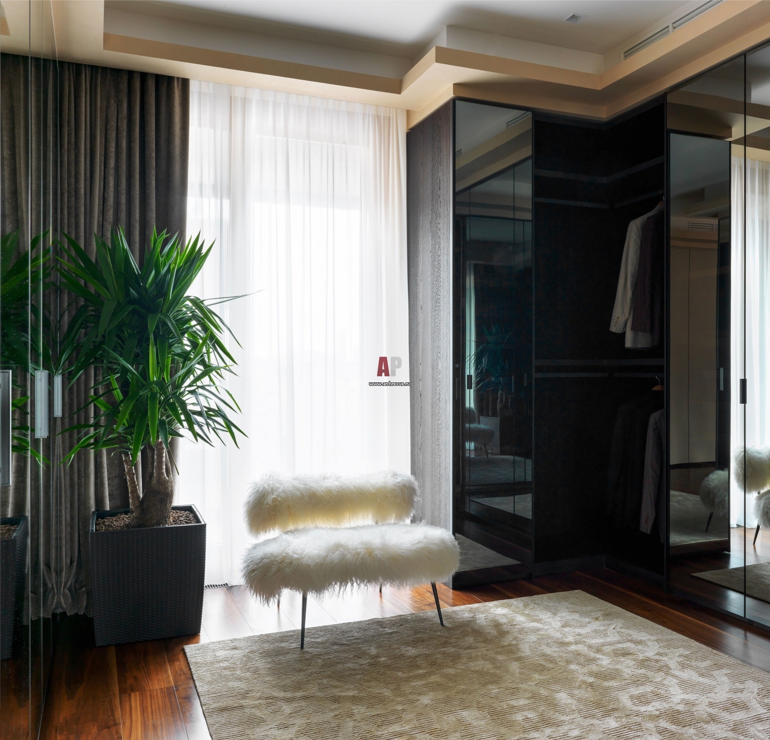 Гардеробная комната при спальне. Шкафы, Poliform. Кресло, Baxter.