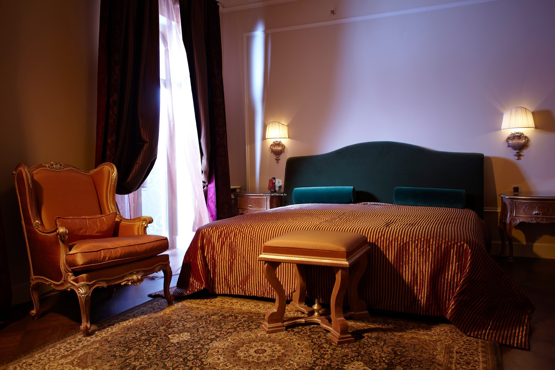 Фрагмент главной спальни президентского номера. Кровать размера king-size.
