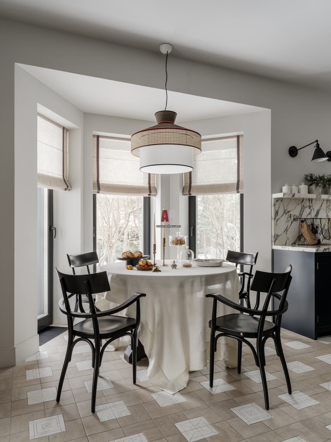 Дом в средиземноморском стиле. Зона для завтраков на кухне.
