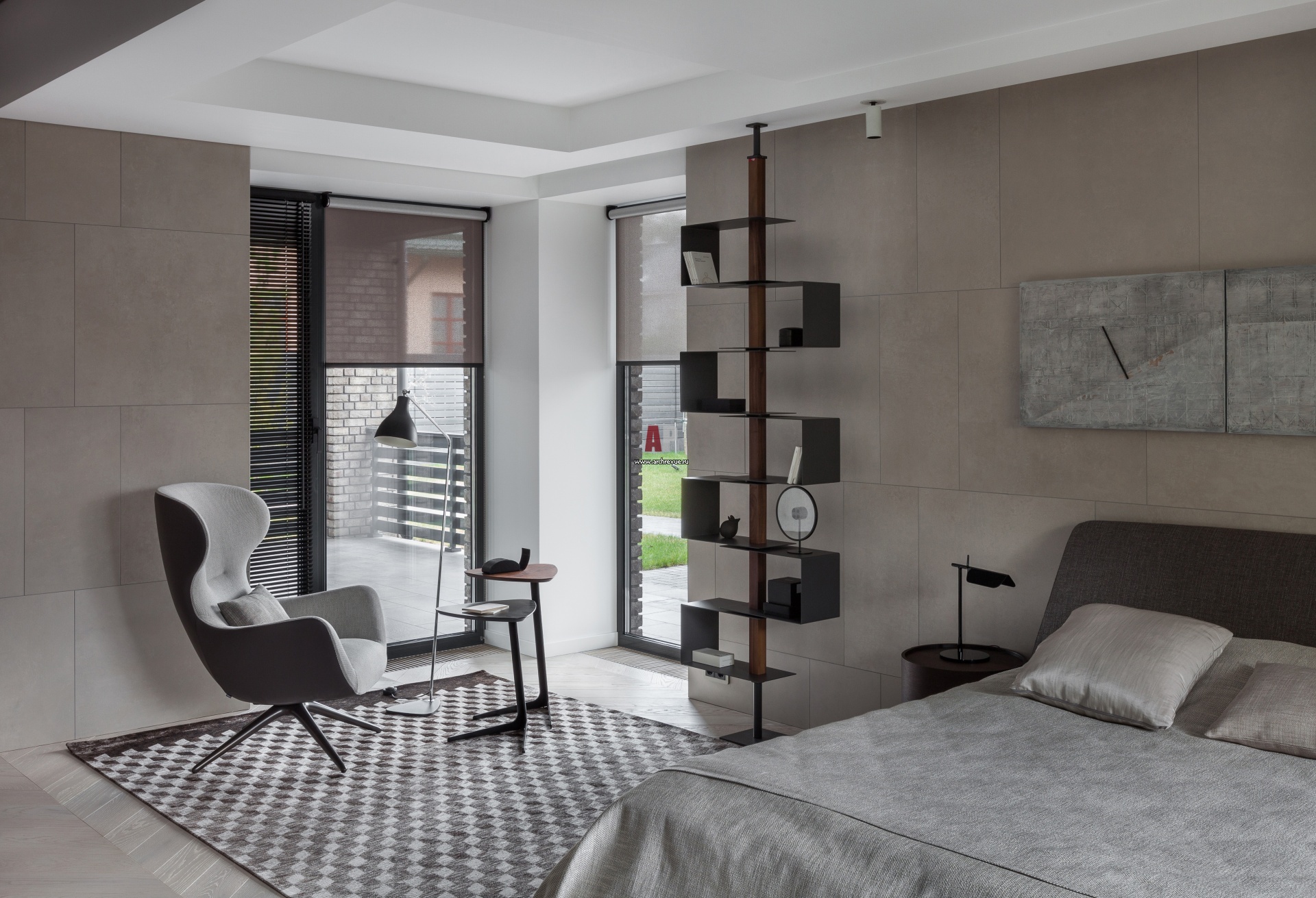 Хозяйская спальня. Панорамные витражи – одно из преимуществ архитектуры дома.