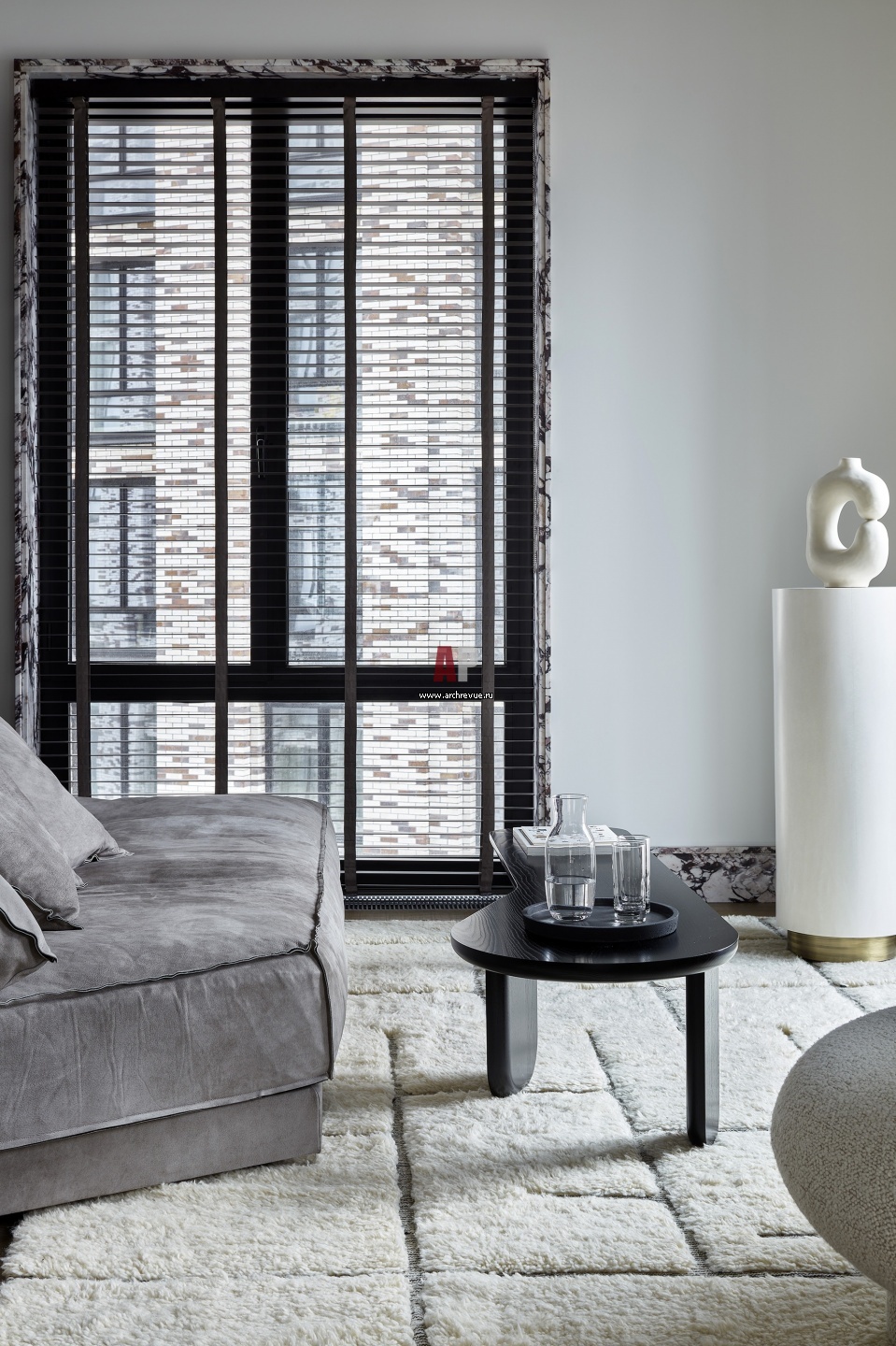 Контрастная квартира в современной высотке. Интерьер гостиной.