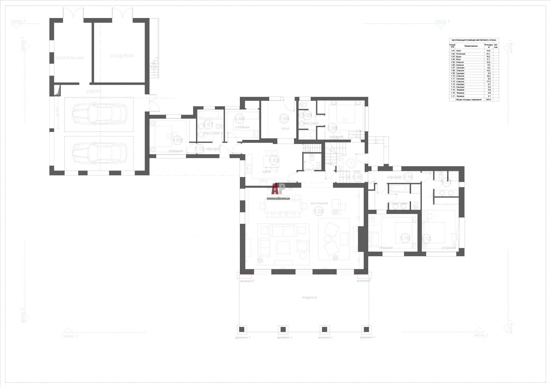 Реконструкция старинной виллы в Испании. Планировка 1 этажа.