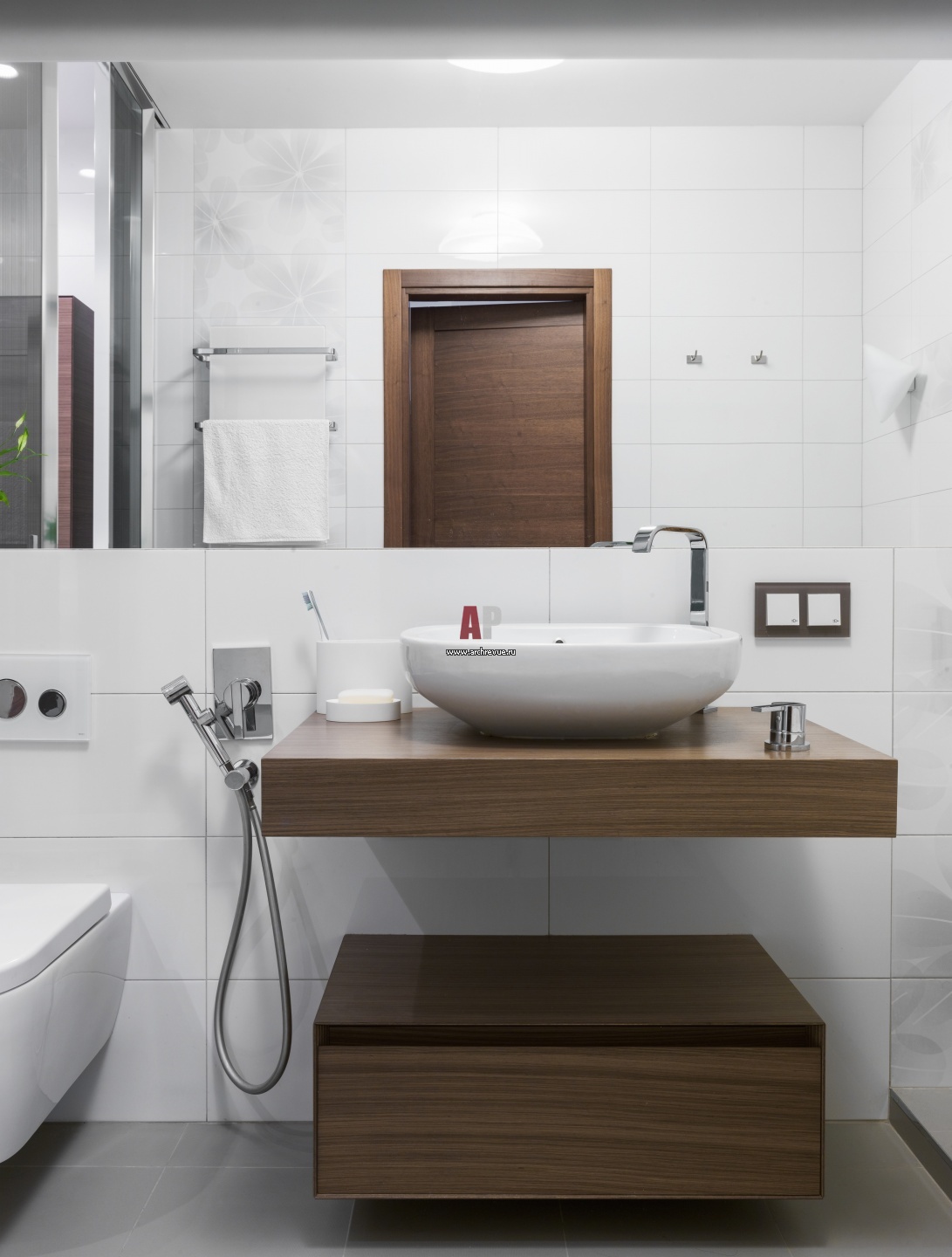 Раздельные санузлы были объединены и увеличены за счет присоединения части соседних помещений. В итоге в ванной разместилась умывальник, ванна и зона постирочной. Умывальник и сантехника, Antonio Lupi. Инсталляция, Tece.