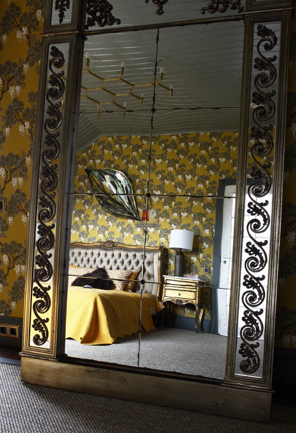 Второй этаж состоит из изолированных комнат, каждая со своим цветом и настроением. Напольное зеркало, WonderWood. Светильник, Nemo, модель Crown Plana Mega.
